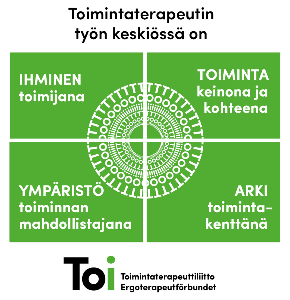 Toimintaterapeutti on kuntoutusalan asiantuntija ja laillistettu terveydenhuollon ammattihenkilö. Toimintaterapian tavoitteena on mahdollistaa asiakkaalle itselleen merkityksellinen arki tilanteissa, joissa toimintaan osallistumisessa on haasteita. Toimintaterapeutti auttaa asiakasta tunnistamaan vahvuuksiaan ja voimavarojaan. Terapeutti tutustuu asiakkaan toimintakykyyn, arkiympäristöön ja muutostoiveisiin. Asiakas tai hänen huoltajansa ja terapeutti miettivät yhdessä realistiset ja konkreettiset tavoitteet terapiajaksolle. Terapian tavoitteet voivat liittyä esimerkiksi leikkiin, koulunkäyntiin, työhön, itsestä huolehtimiseen, kodin ulkopuolella asioimiseen tai vapaa-aikaan.